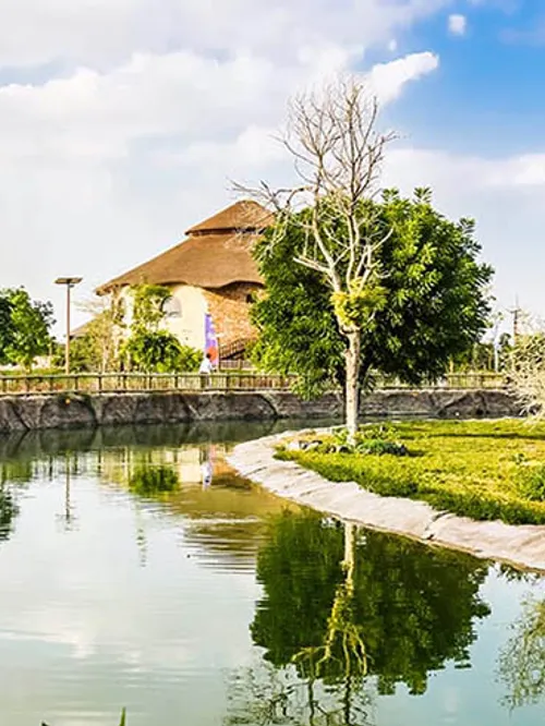 - A walking tour through Al Wadi to the African village, Explorer village and Asian village