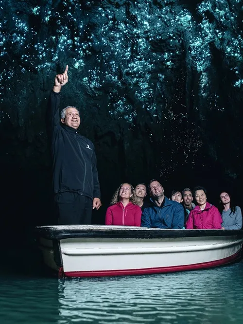 - Experience the renowned Waitomo caves by boat, gliding beneath a breathtaking display of luminous glowworms.