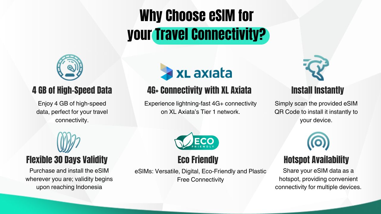 - Experience the ease of using an eSIM for reliable internet access and quick local data while exploring Indonesia.