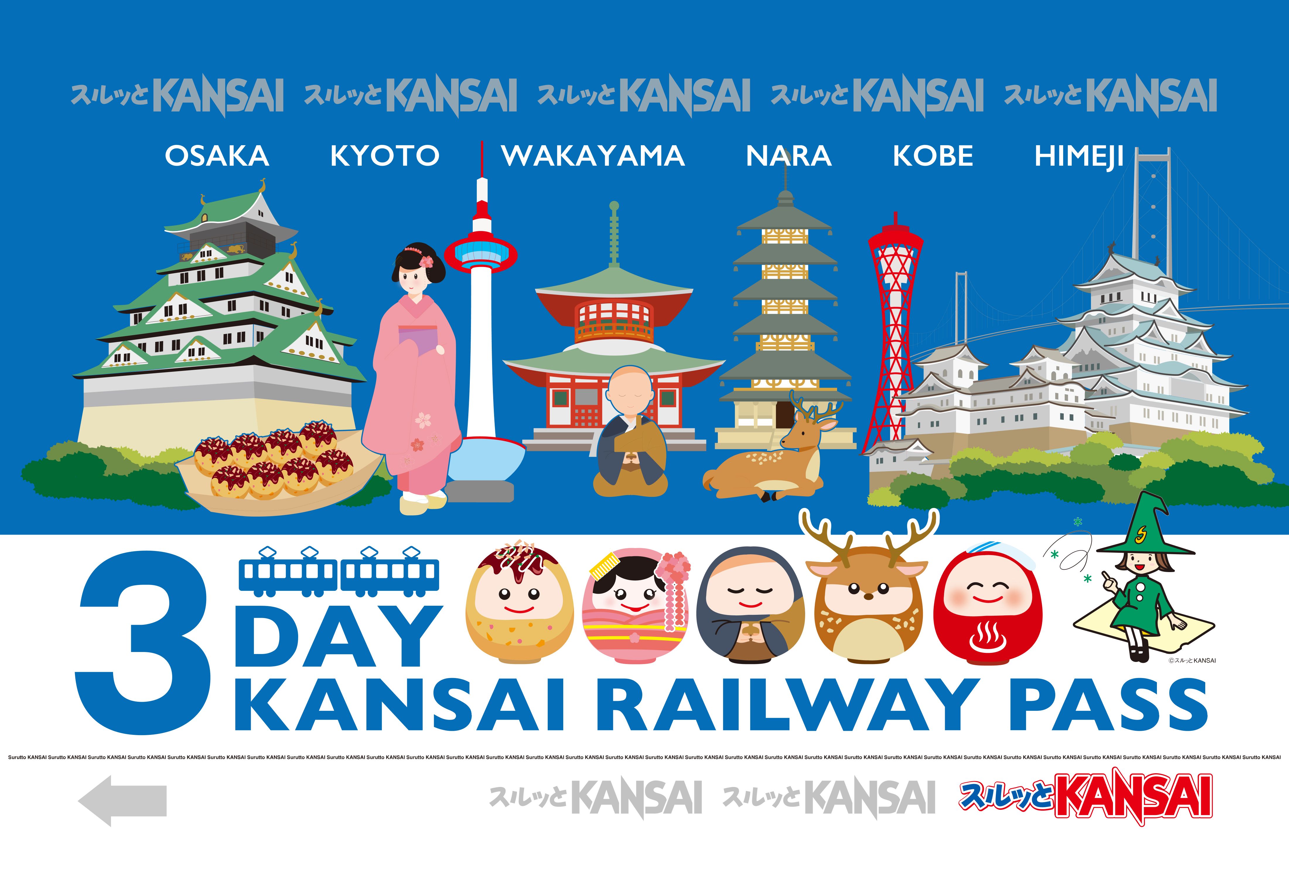 - Enjoy unlimited rides on all metro and private railways in the Kansai region for either two or three days.