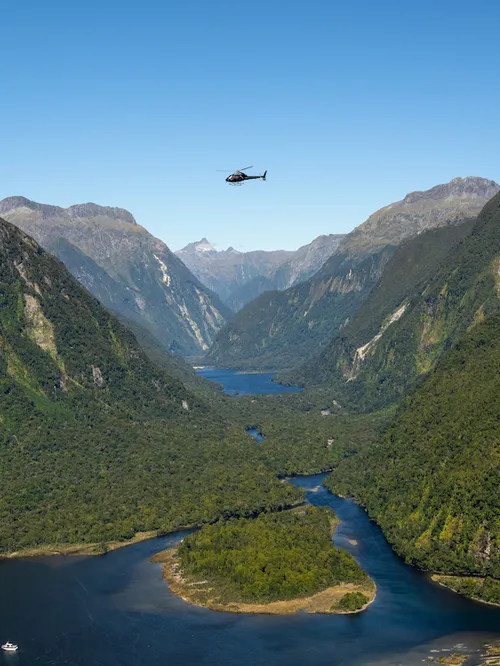 - Soar above the stunning fjord, shaped by ancient glaciers, famous for its cascading waterfalls and unique wildlife.