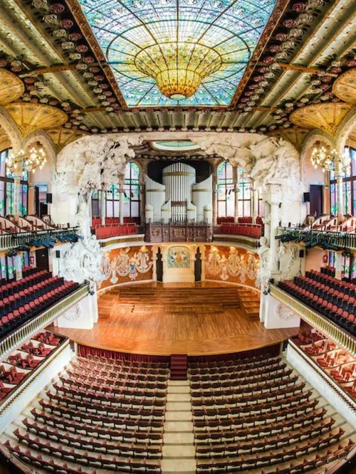 - Discover a Barcelona concert hall where sculpture, mosaic, stained glass, and ironwork beautifully converge.