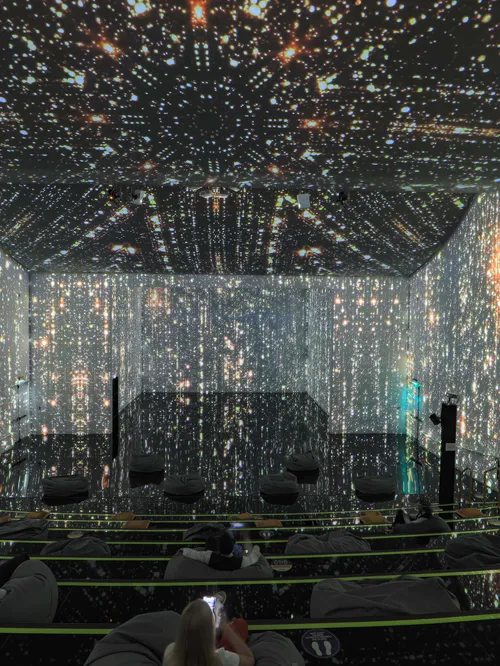 - It provides a multisensory experience with ambient soundtracks that enhance the overall mood, creating an ambience of awe and wonder where visitors can immerse themselves in digital creativity.