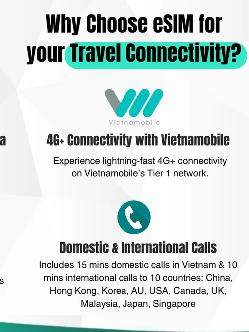 - Enjoy seamless internet access with the convenience of an eSIM while traveling in Vietnam.