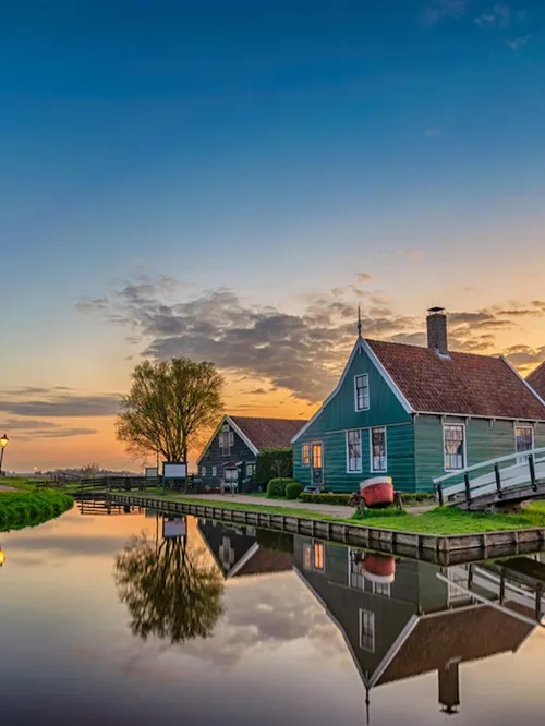 - Just a short 20-minute journey from Amsterdam, you'll discover the charming village of Zaanse Schans, celebrated for its stunning wooden windmills and preserved 18th-century architecture.